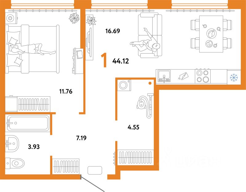 Продаётся 1-комнатная квартира в строящемся доме (Энергия), срок сдачи: IV-кв. 2025, общей площадью 44.12 кв.м., на 12 этаже. Новый жилой комплекс "Страна.Энтузиастов" от группы компаний "Страна Девелопмент" расположен по адресу: г. Екатеринбург, по ул. Шефская.