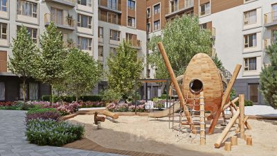 Каждый двор в квартале "Траектория" — продолжение квартиры, только под открытым небом. Здесь можно прогуляться босиком по траве, устроить утреннюю йогу, почитать книгу в гамаке или отправить детей поиграть, не переживая за их безопасность.