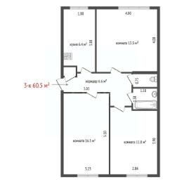 Квартира имеет правильную форму, окна квартиры выходят на две стороны света. Комнаты в квартире по сравнению с новостройками имеют хорошую площадь : 11,8 ; 15,5 и 16,5 кв.м.