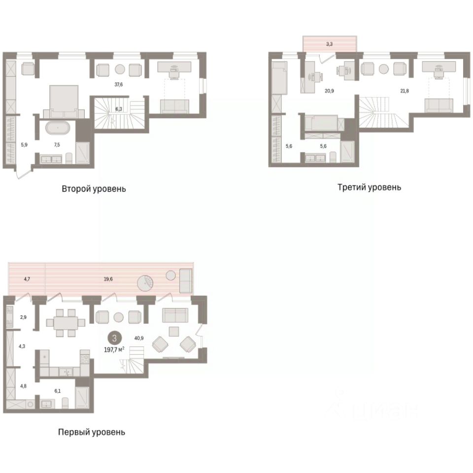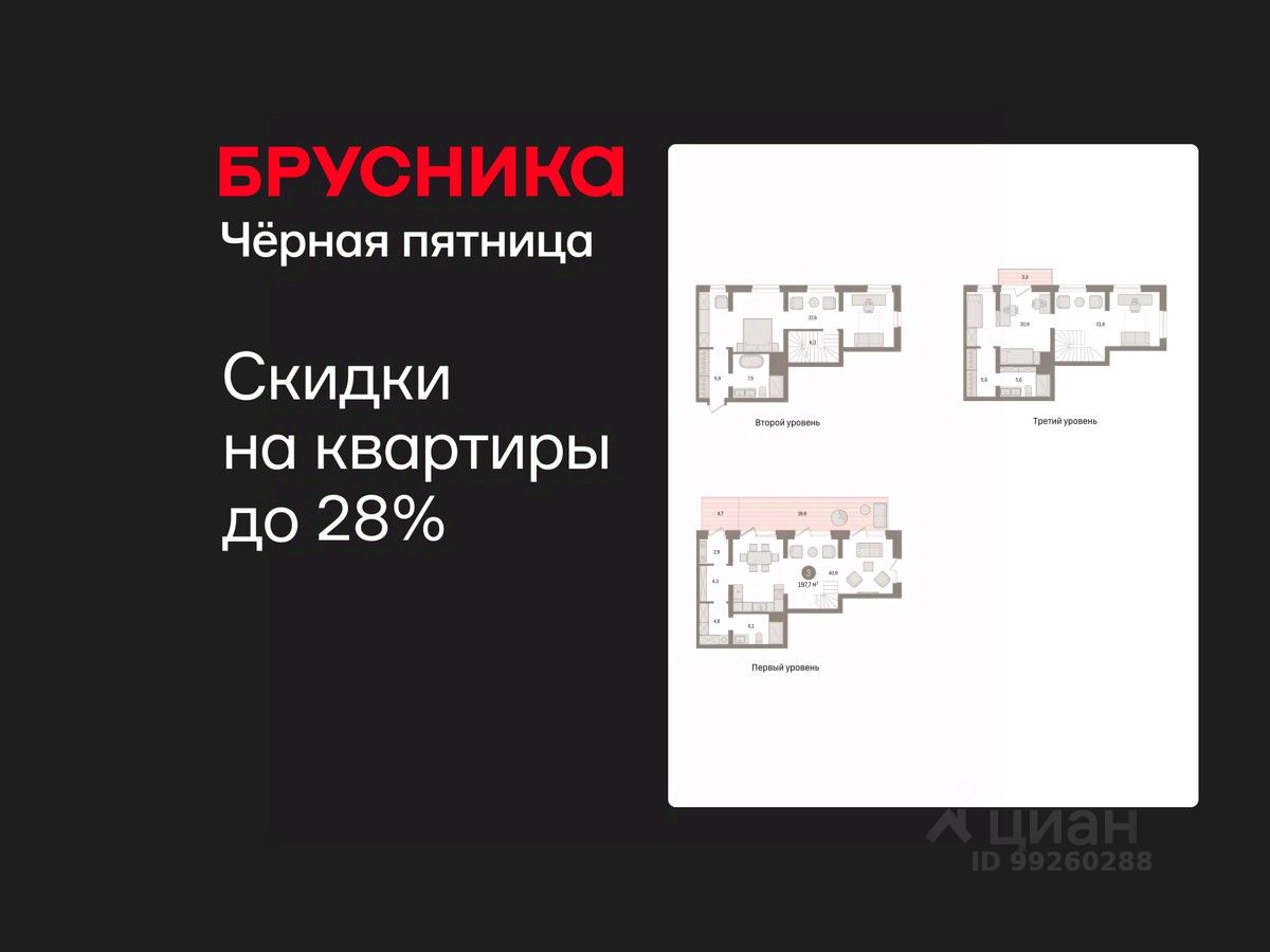 Двухуровневая квартира с кухней-гостиной и тремя спальнями в Северном квартале. Особенности планировки: гардеробная, окна в пол, двухуровневая, вид во двор, отдельный вход, разнесённые спальни, предчистовая отделка, мастер-спальня, терраса, постирочная, балкон.