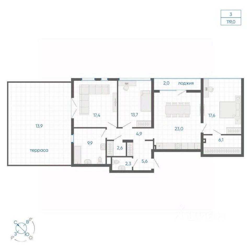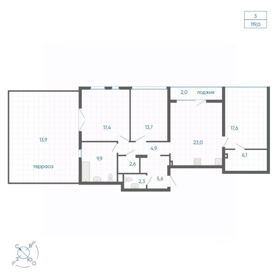 Общая площадь119 м²