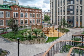 дворе с ландшафтным дизайном, вся территория комплекса находится под