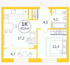 Евродвушка 42,9 м, ремонт включён - поставь свою мебель и живи!