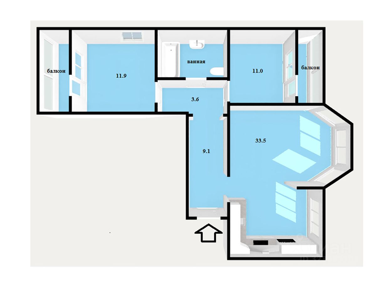 Функциональная планировка. Две изолированные комнаты, на разные стороны дома в каждой комнате лоджии, вместительный коридор, большая кухня-гостинная.