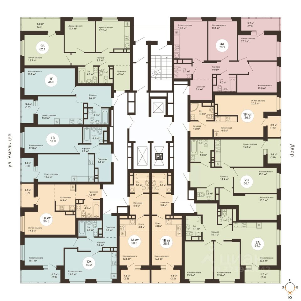 По данным с официального сайта застройщика, ЖК "Южный сад" состоит из 5 высотных домов:
