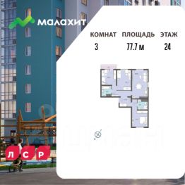 Квартира располагается на 24 этаже 25-этажного дома в ЖК Малахит.