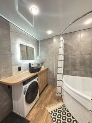 В квартире сделан капитальный ремонт, установлены пластиковые окна, заменена вся сантехника и проводка, поменяны полы, новая надежная сейф дверь, два больших застекленных балкона, два сан узла.
