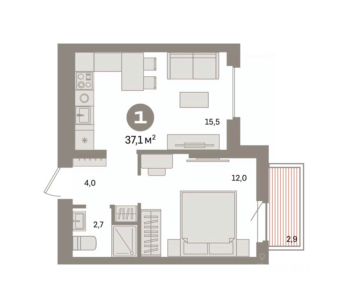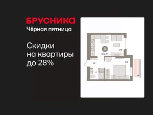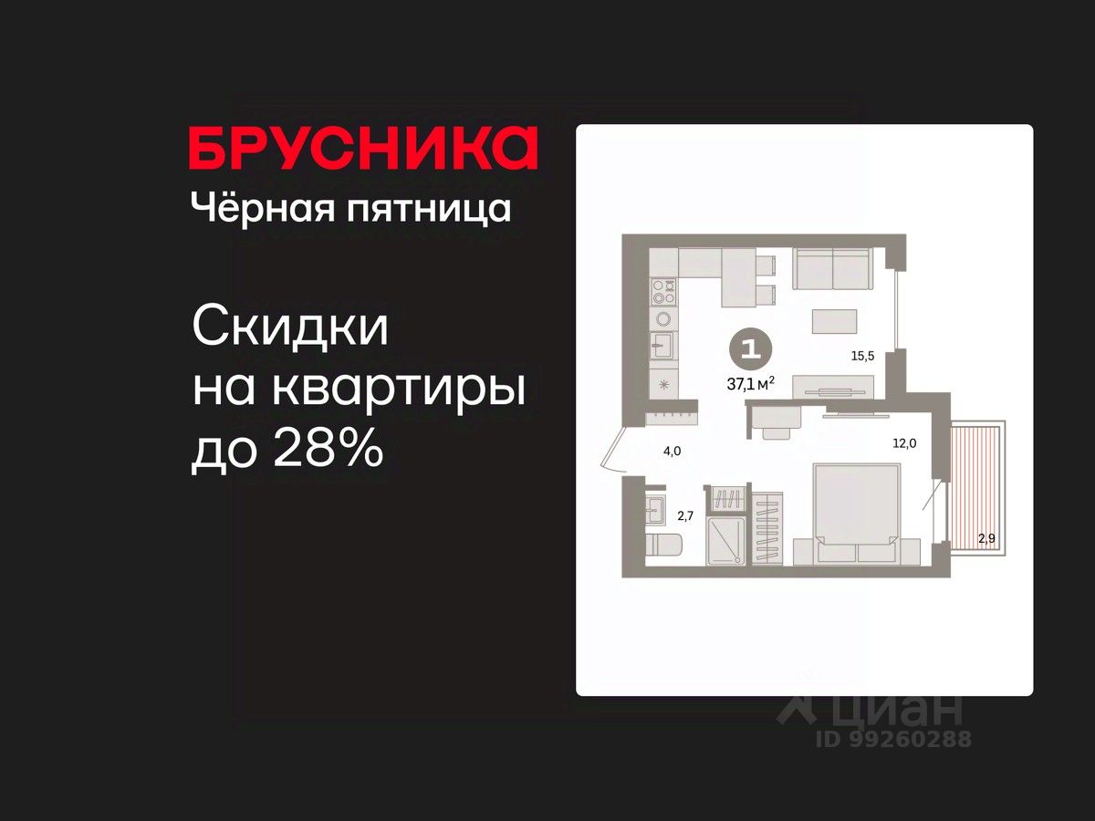 Квартира с кухней-гостиной и одной спальней в квартале "Депо". Особенности планировки: предчистовая отделка, балкон.