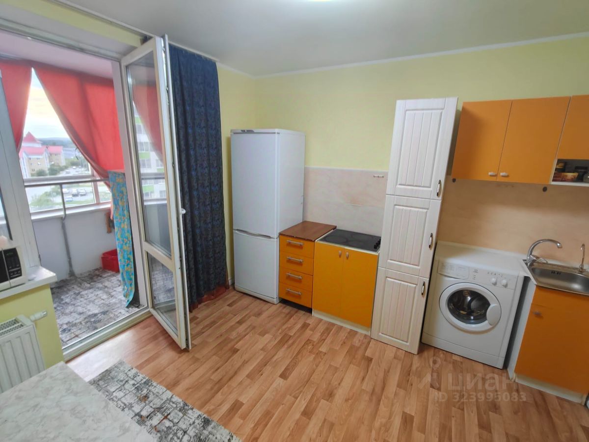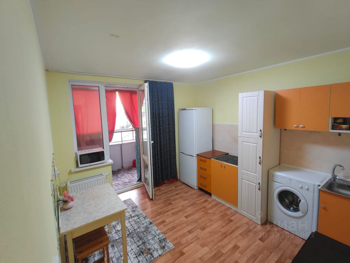 Большая светлая комната 14 кв.м и просторная кухня 10 кв.м. На кухне остается кухонный гарнитур со стеклокерамической варочной панелью.
