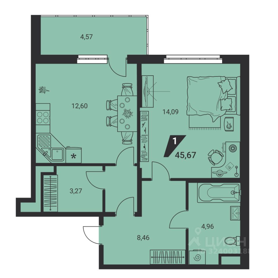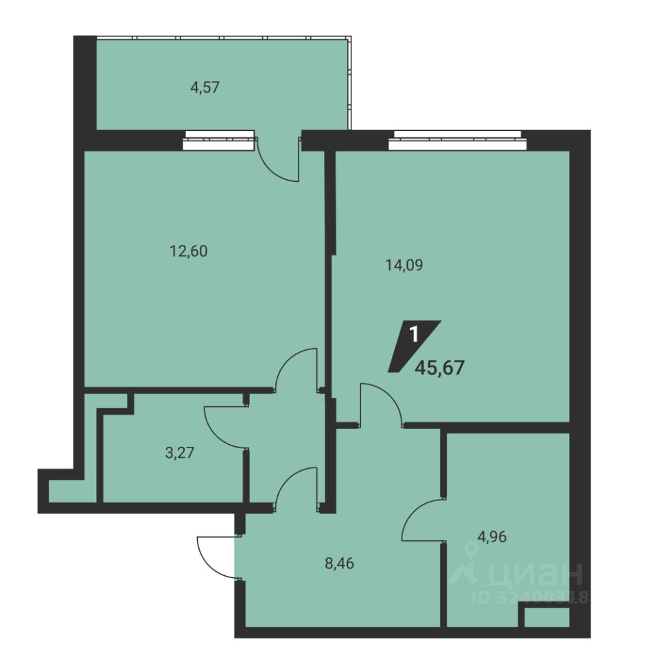 Общая площадь45,67 м²