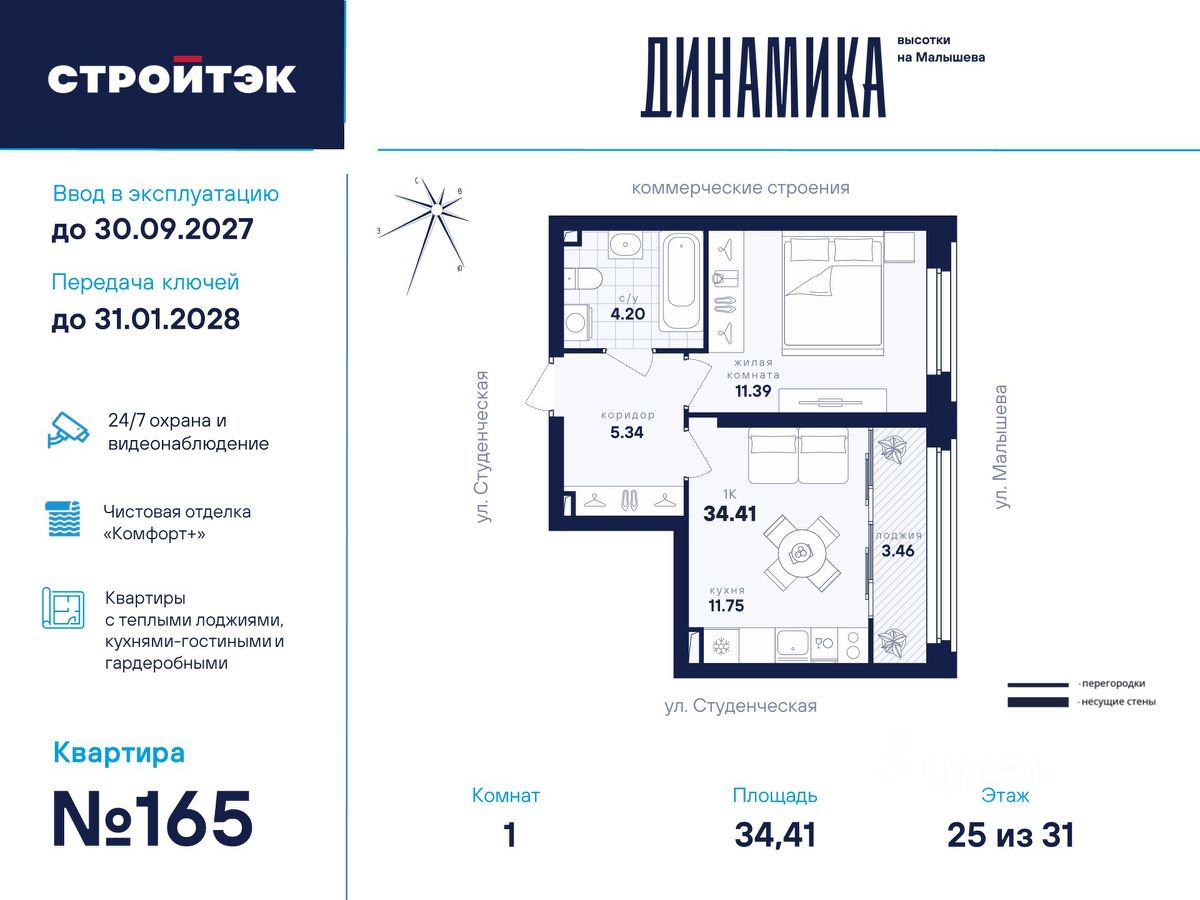 Настройте жизнь на максимум В Динамике воплощают мечты. Её фасады стремятся ввысь и рисуют силуэт ступеней — символа вашего движения, где всё задуманное сбывается. В интеллигентном микрорайоне Втузгородок всё под рукой. Пешком до остановки 5 минут, на машине до центра — 10. Соседство с торговыми комплексами и доступность ЕКАД входят в число преимуществ квартала наравне с близостью УРФУ, главных театров, филармонии, школ и детсадов. Выгляните в окно — и увидите знаменитое озеро Шарташ, которому около миллиона лет. Здесь катаются на сапах, лодках и катамаранах, а в Шарташском лесопарке вокруг озера — на велосипедах летом и лыжах зимой. Новое звучание района Выразительные башни Динамики притягивают взгляды издалека. Сплошные стеклянные витражи фасадов меняют восприятие проекта в зависимости от ракурса, времени года и суток. В квартирах с витражным остеклением алюминиевые оконные рамы и широкие подоконники визуально увеличивают пространство. Благодаря современным технологиям витражи обеспечивают дополнительную теплоизоляцию, помогая сохранять комфортный микроклимат в квартире и летом, и зимой. Отдых в вашем ритме Выбирайте досуг по душе для себя и семьи. Занимайтесь на тренажёрах и воркаут-комплексе, играйте в пинг-понг, футбол или баскетбол. А детей предоставьте насыщенному плейхабу, который тренирует тактильность и равновесие в атмосфере безопасности и контролируемого риска. Размеренно прогуливайтесь меж декоративных холмов, под тенистыми навесами-перголами вблизи удобных скамеек, многолетних трав и разновысотной уличной мебели. СТРОЙТЭК возводит Динамику в 3 этапа. Второй этап строительства В нём 2 секции. С2 — престижная высотка в 31 этаж. Здесь 209 квартир от 1- до 3-комнатных и 19 уникальных планировок с просторными кухнями-гостиными до 21 м квадратного. Кроме того, закрытый паркинг на 31 место и 40 кладовых-келлеров внутри стилобата. В подъезде С2 — светлый холл с минималистичным дизайном бизнес-класса, помещения для колясок и самокатов, а также 3 надёжных лифта на 1 000 кг каждый. С4 — парадный 6-этажный дом с элегантной смещённой геометрией и полным витражным остеклением всех 5 жилых этажей. Внизу расположено впечатляющее лобби с лаунж-зоной и стойкой ресепшен, атмосферная уличная площадь для встреч и торговая галерея. В секции всего 34 квартиры в 16 уникальных планировках от студий до 3-комнатных. Это особый уровень респектабельной и неторопливой жизни. Технологии комфорта Обратите внимание на специальные форматы планировок с гардеробными и тёплыми лоджиями. Отдельно в С4 — на видовые квартиры с террасами на 5 и 6 этажах, а также лоты с мастер-спальнями, где у приватного пространства для отдыха своя ванная. Что касается отделки — в Динамике улучшенный стандарт "Комфорт+". Помимо привычных комфортных сантехники и электрики, в него входят оконные стёкла Energy Light, приточные клапаны вентиляции Air-Box, особо прочный ламинат 33 класса и устойчивые к многократной покраске виниловые обои. Белые межкомнатные двери и плинтусы лаконично подчеркну