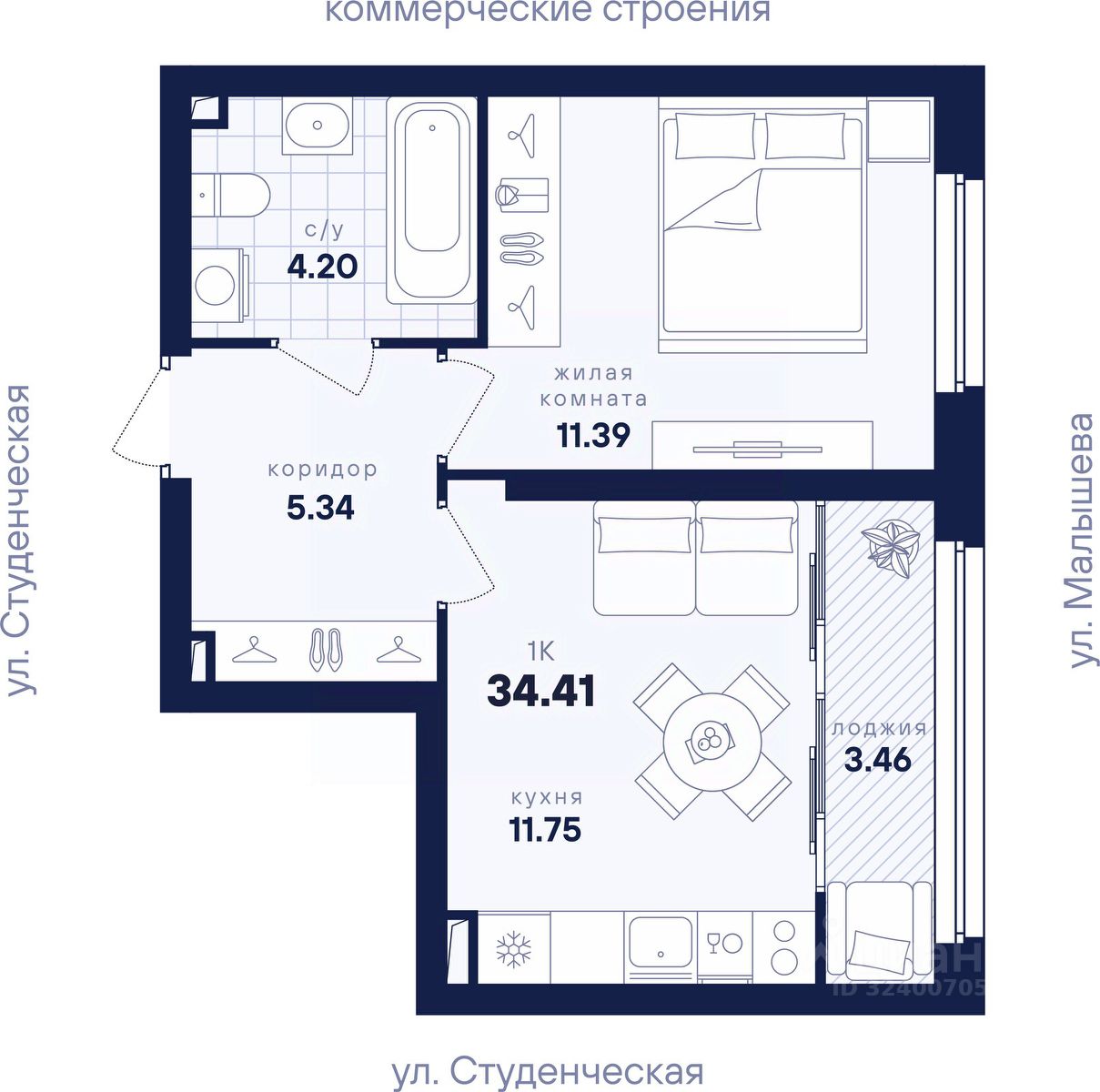 Общая площадь34,41 м²