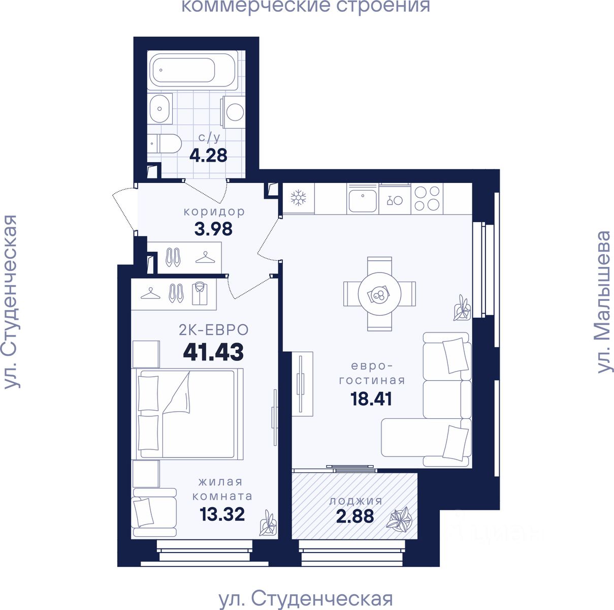 Общая площадь41,43 м²