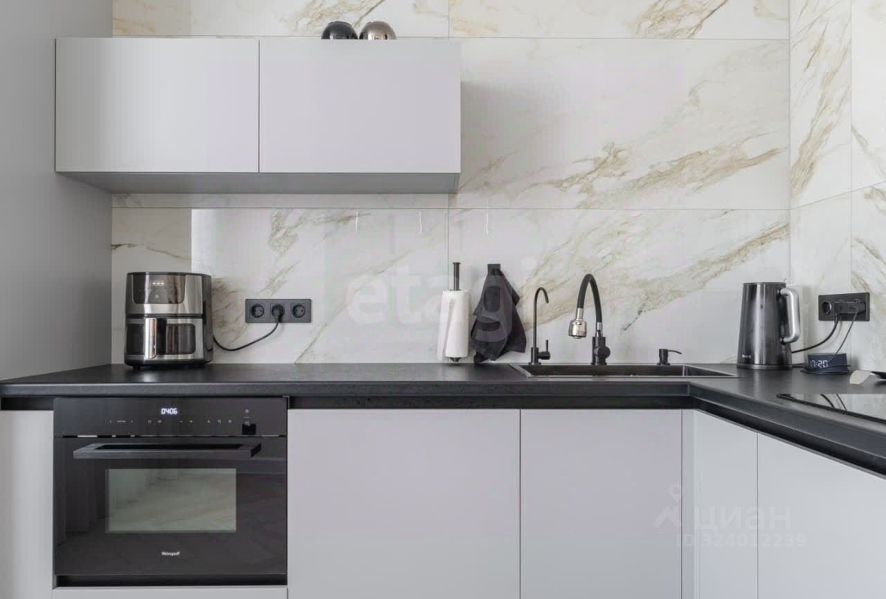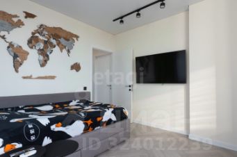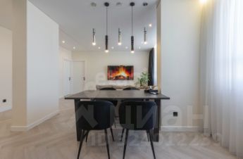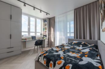 Планировка включает две изолированные спальни, одна из которых является мастер-спальней с собственной гардеробной зоной и санузлом, и большую гостиную, объединенную с кухней. Это решение создает масштабное многофункциональное пространство для комфортного отдыха, приема гостей и семейных обедов. Кухня оборудована обеденным столом-трансформером на десять персон, модульным диваном с дополнительным спальным местом и всей необходимой встроенной техникой: индукционная варочная панель, духовой шкаф, цилиндрическая вытяжка, посудомоечная и стиральная машины. В детской комнате обустроена рабочая зона и установлен диван-кровать. Дополнительные преимущества — система умного света с управлением с пультов, кондиционеры и бойлер.