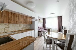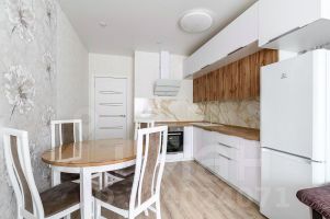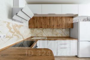 Кухня-гостиная продумана до мелочей, прекрасно зонируется на обеденную и гостевую зоны. Тут с комфортом можно разместить и диван с телевизором для отдыха, и библиотеку, и большую елку на Новый год. Кухонный гарнитур со всей необходимой техникой остается новым хозяевам.