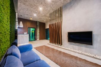 В холле первого этажа дома выполнен дизайнейрский ремонт с мягкой зоной ожидания и телевизором, во дворе дома-ландшафтный дизайн, что создаёт атмосферу комфорта с первых минут появления в доме.