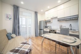 Квартира правильной эргономичной планировки: кухня-гостиная 11,5 м и спальня 16 м, очень уютная, светлая, ухоженная, с прекрасной аурой, совсем недавно после косметического ремонта в приятных светлых тонах, установлены кондиционер и бризеры для постоянной циркуляции свежего воздуха. Просторная лоджия 3,5 м, на которой можно обустроить кабинет или релакс зону, большая прихожая с гардеробом.