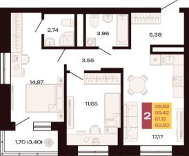 Продаётся 2-комнатная квартира в строящемся доме (Секция 1.1), срок сдачи: II-кв. 2027, общей площадью 62.82 кв.м., на 29 этаже. Новый жилой комплекс "Первый южный" от застройщика "Проспект Групп" расположен по адресу: г. Екатеринбург, улица Амундсена.