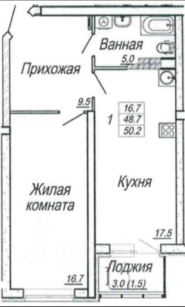Квартира с функциональной планировкой. Кухня-гостинная 17 кв.м., жилая комната 16,5 кв.м., вместительный коридор. Окна квартиры выходят во двор.