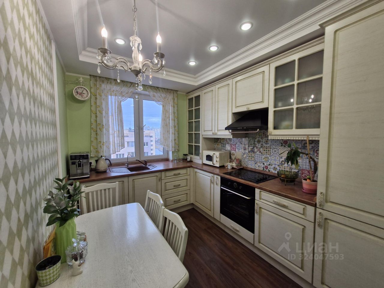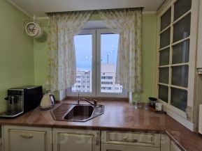 В квартире остаются встроенные шкафы (в коридоре, спальне, на кухне и ванной комнате); кухонный гарнитур в итальянском стиле, со встроенной техникой: варочная поверхность, духовой шкаф и вытяжка Gorenje, посудомоечная машина Bosch, холодильник Whirlpool.