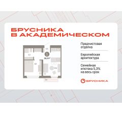 Квартира с кухней-гостиной и одной спальней в Бруснике в Академическом. Особенности планировки: вид во двор, предчистовая отделка, балкон.