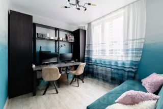 Готовое просторное рабочее место с двумя шкафами для хранения и стеллажом