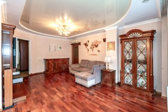 Новым собственникам остается: кровать, 3 тумбочки, кровать, туалетный столик c зеркалом, шкаф для книг, 2 встроенных шкафа-купе, система хранения в гардеробной, 2 кондиционера, стеллаж под тв и музыкальную систему c колонками, проигрывателем, усилителем, комод, сервант, диван, обеденный стол и 6 стульев, кухонный гарнитур, вытяжка, духовой шкаф, варочная поверхность, шкаф в прихожей.