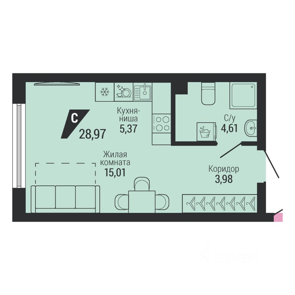 Общая площадь28,97 м²