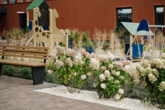 Дворовое пространство недоступно для автомобилей и посторонних. Можно отпускать гулять детей одних, не беспокоясь за их безопасность: установлено видеонаблюдение. Во дворе есть все для комфортного отдыха и счастливого детства: два сухих фонтана для летних игр, игровые площадки, качели, уличные шахматы. Для взрослых лаунж-зоны, собственный спортивный корт и воркаут-пространство.