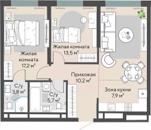 Продаётся 2-комнатная квартира в строящемся доме (Секции 2.3-2.4), срок сдачи: I-кв. 2028, общей площадью 76.6 кв.м., на 16 этаже.