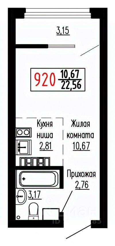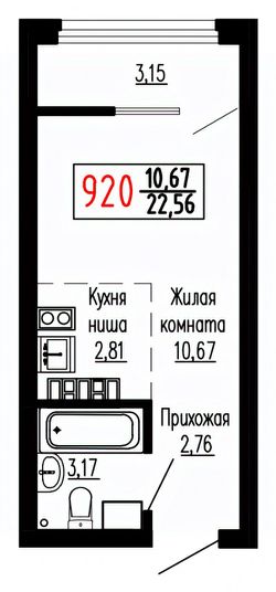 Общая площадь22,7 м²
