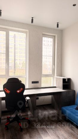 Детская-трансформер: Авторская планировка, где первое спальное место находится на втором ярусе, а внизу — полноценная зона гардероба. Второе спальное места на первом ярусе. Вдоль всей стены с панорамным окном — огромный учебный стол (идеальное решение для двоих детей).
