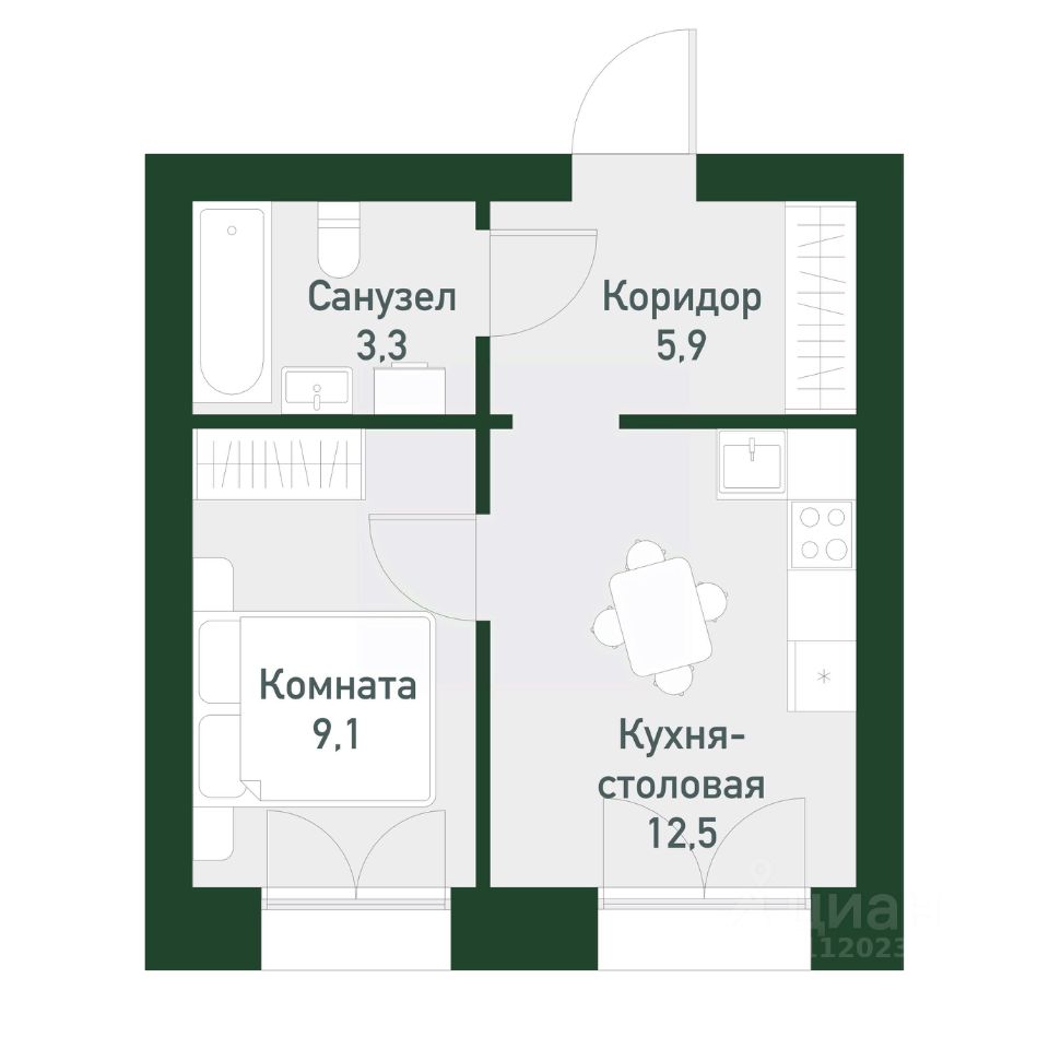 Общая площадь32,9 м²