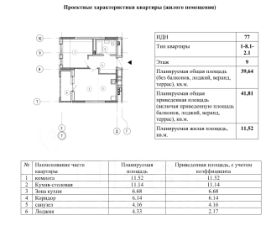 Планируемая общая площадь квартиры составляет 41,81 кв.м., из них кухня-гостиная 18 кв.м., комната 11,52 кв.м., лоджия 4,33 кв.м. Окна выходят на юго-запад.