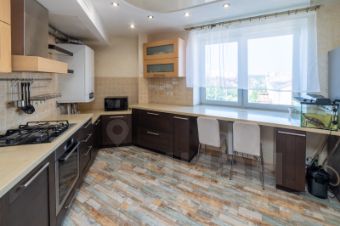 -кухню-стловую оборудованную кухонным гарнитуром с встроенной техникой (новая посудомоечная машина Haier, газовая плита Bosch, духовой шкаф Bosch, вытяжка), также микроволновая печь LG, двухстворчатый холодильник Bosch, телевизор, фильтр для питьевой воды