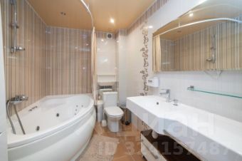 -второй санузел, с большой ванной с функцией гидромассажа, раковиной и унитазом.