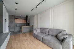 - Современный дизайн: квартира выполнена по индивидуальному дизайн-проекту, что придает каждому элементу особый стиль и атмосферу.