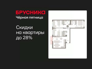 Квартира с кухней-гостиной и тремя спальнями в квартале "Траектория". Особенности планировки: окна на две стороны, гардеробная, вид во двор, разнесённые спальни, предчистовая отделка, мастер-спальня, балкон.