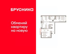 Квартира с кухней-гостиной и тремя спальнями в квартале "Траектория". Особенности планировки: балкон, окна на две стороны, предчистовая отделка, разнесённые спальни.