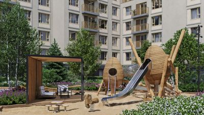 Мы закроем дворы от машин, чтобы создать безопасную среду для отдыха. Применим натуральные материалы в отделке малых архитектурных форм — дерево, камень, металл без лишней обработки. Внутри каждого двора — детские площадки, перголы с тенистыми зонами, мягкие газоны и мест