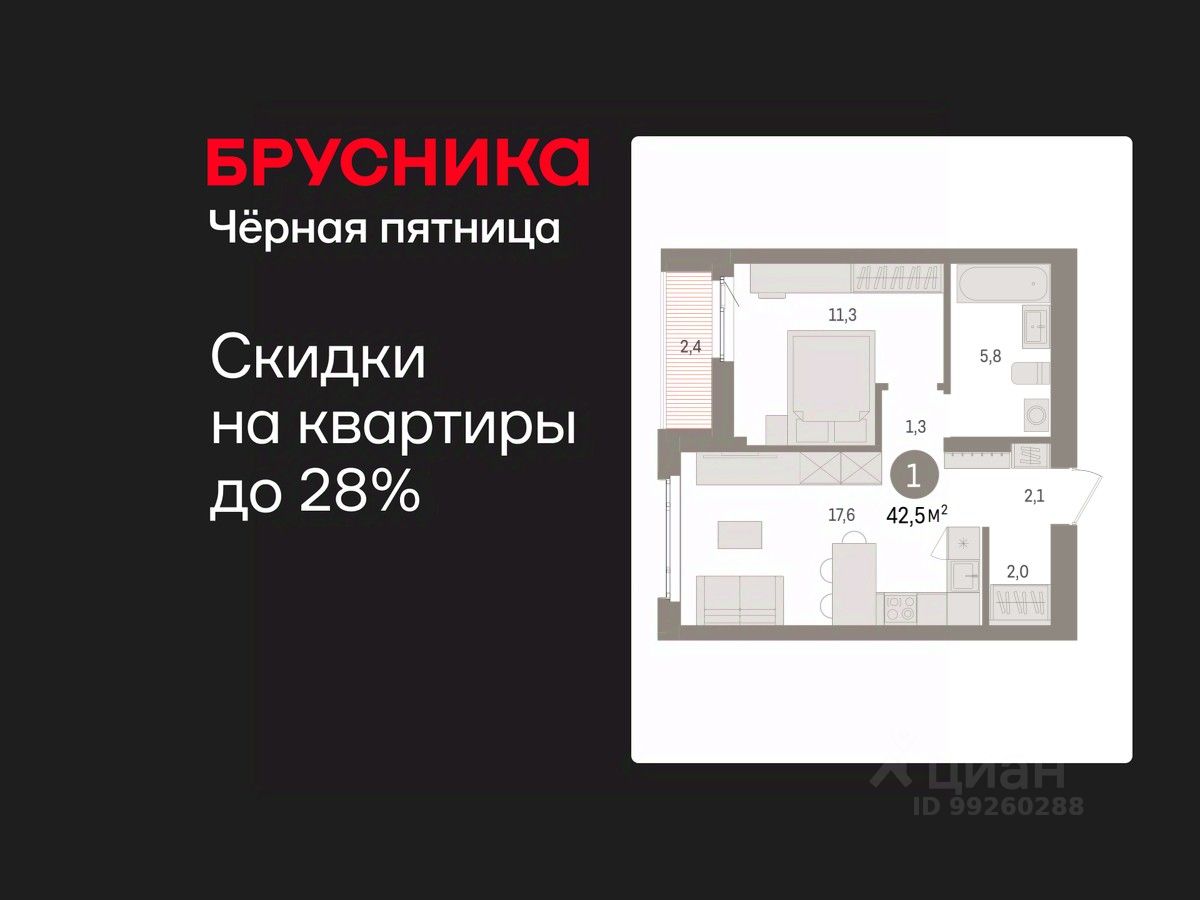 Продается однокомнатная квартира от застройщика с предчистовой отделкой в ЖК "Квартал Траектория" на 8 этаже. Общая площадь: 42.5 кв.м., жилая: 11.3 кв.м., площадь просторной кухни-столовой: 17.6 кв.м. Все окна выходят на одну сторону. В квартире одна лоджия, один совмещенный санузел. Высота потолков 2.82 м.