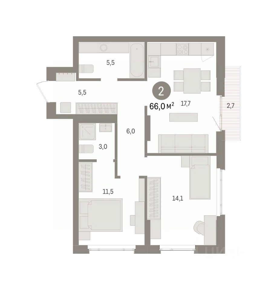 2-комн. квартира с предчистовой отделкой в ЖК "Квартал Траектория" на 7 этаже. Общая площадь: 66 кв.м., жилая: 25.6 кв.м., площадь просторной кухни-столовой: 17.7 кв.м. Угловая квартира, идеально подойдет любителям тишины и панорамных видов. В квартире один балкон, два совмещенных санузла. Высота потолков 2.82 м.