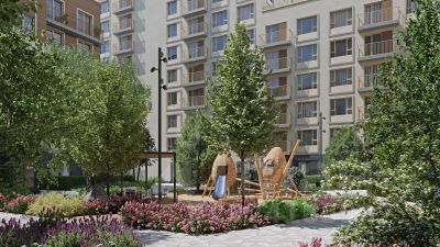 В "Траектории" мы предусмотрели несколько общественных пространств, открытых для всех горожан: встречающий сквер, лесопарк у храма и событийный сквер между домами. Когда захочется тишины и уединения, можно устроить прогулку во внутренних дворах: в них нет машин и посторонних, зато много зелени, света и мест для отдыха.