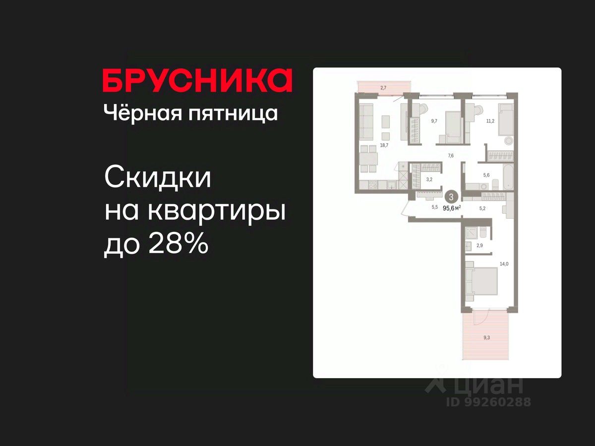 Продается трехкомнатная квартира с предчистовой отделкой в ЖК "Квартал Траектория" на 2 этаже. Общая площадь: 95.6 кв.м. Высота потолков 2.82 м.