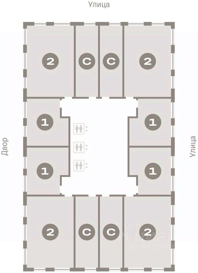 Квартира с кухней-гостиной и двумя спальнями в квартале "Траектория". Особенности планировки: второй санузел, вид во двор, разнесённые спальни, предчистовая отделка, балкон.