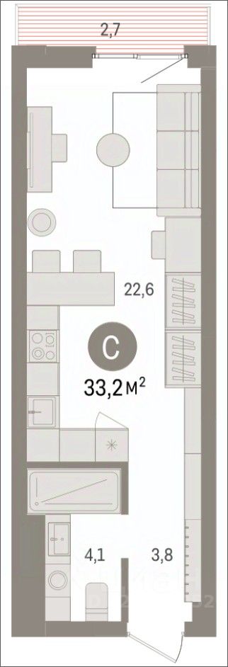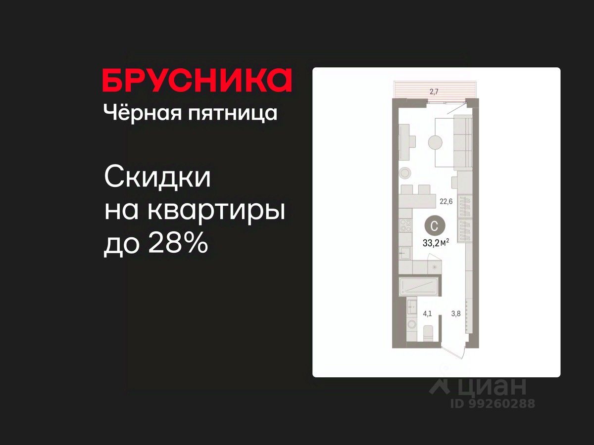 Студия в квартале "Траектория". Особенности планировки: предчистовая отделка, балкон.