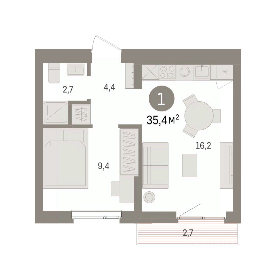 Просторная 1-комн. квартира с предчистовой отделкой в ЖК "Квартал Траектория" на 5 этаже. Общая площадь: 35.4 кв.м., жилая: 9.4 кв.м., площадь просторной кухни-столовой: 16.2 кв.м. Все окна выходят на одну сторону. В квартире один балкон, один совмещенный санузел. Высота потолков 2.82 м.