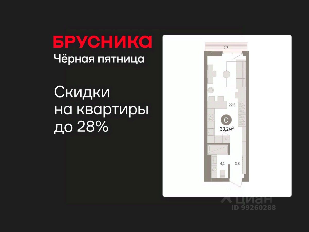 Студия в квартале "Траектория". Особенности планировки: предчистовая отделка, балкон.