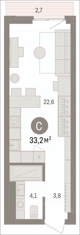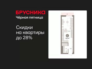 Просторная 1-комн. студия с предчистовой отделкой в ЖК "Квартал Траектория" на 12 этаже. Общая площадь: 33.2 кв.м. Высота потолков 2.82 м.