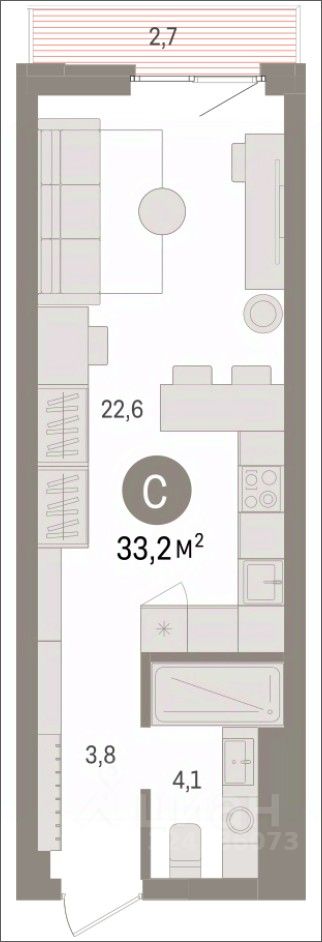 Студия в квартале "Траектория". Особенности планировки: предчистовая отделка, балкон.